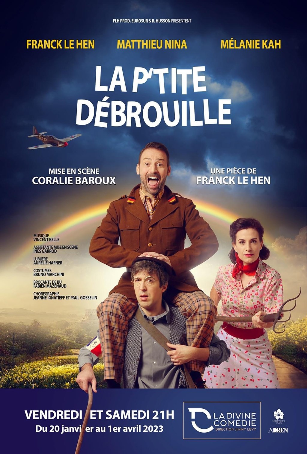« La P’tite Débrouille » de Franck Le Hen; mise en scène de Coralie Baroux, avec Franck Le Hen, Matthieu Nina et Mélanie Kah. A La Divine Comédie les vendredis et samedis à 21h en Mars, et du jeudi au samedi à 21h en Avril (relâche les 8 et 28 Avril).