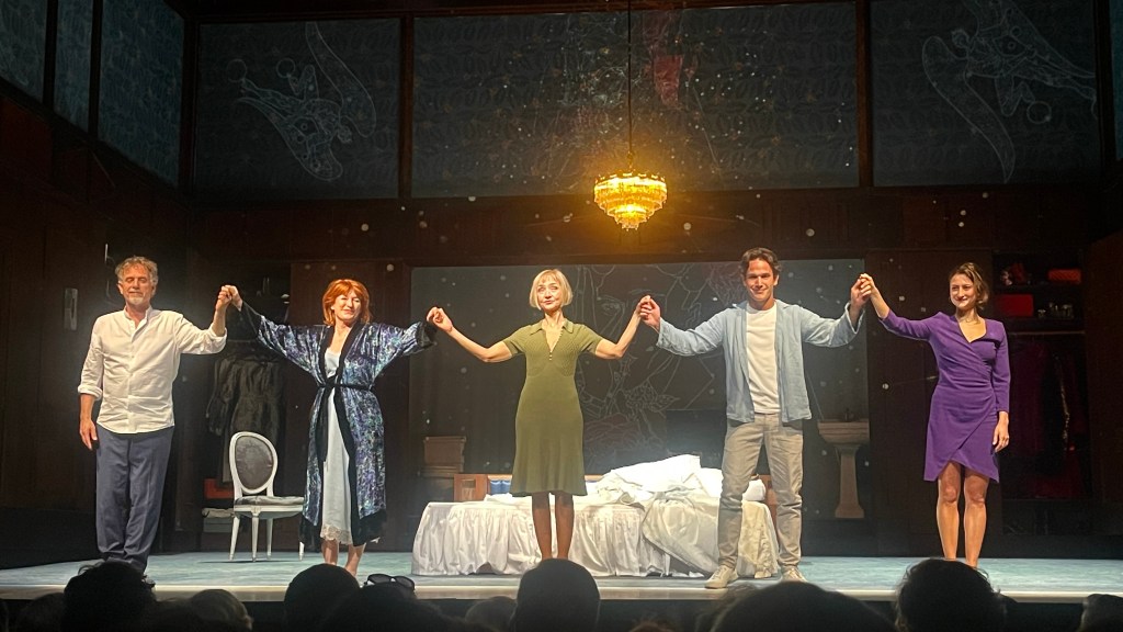 L’Histoire : Dans la chambre d’un grand appartement parisien; Yvonne (Muriel Mayette-Holtz) attend impatiemment et désespérément son fils Michel (Émile Berling); qui a découché cette nuit. Son mari Georges (Charles Berling) et sa sœur Léo (Maria De Medeiros) restent impuissants à son état. Lorsque Michel réapparaît dans « la roulotte »; c’est pour annoncer à sa mère (qu’il appelle Sophie) qu’il a rencontré une jeune femme qu’il aime plus que tout, prête à quitter son amant pour vivre avec Michel; Madeleine (Lola Créton), qu’il souhaite présenter à toute la roulotte. Mais deux petits soucis se posent : Yvonne ne veut absolument pas entendre parler de cette rivale qui va lui voler son « Mike »; et l’amant dont Madeleine veut se débarrasser n’est autre que… Georges !! Tout ce petit monde a rendez-vous demain chez Madeleine; cette rencontre, où chacun a des sentiments forts pour les uns et les autres, va provoquer un tsunami dans la roulotte…