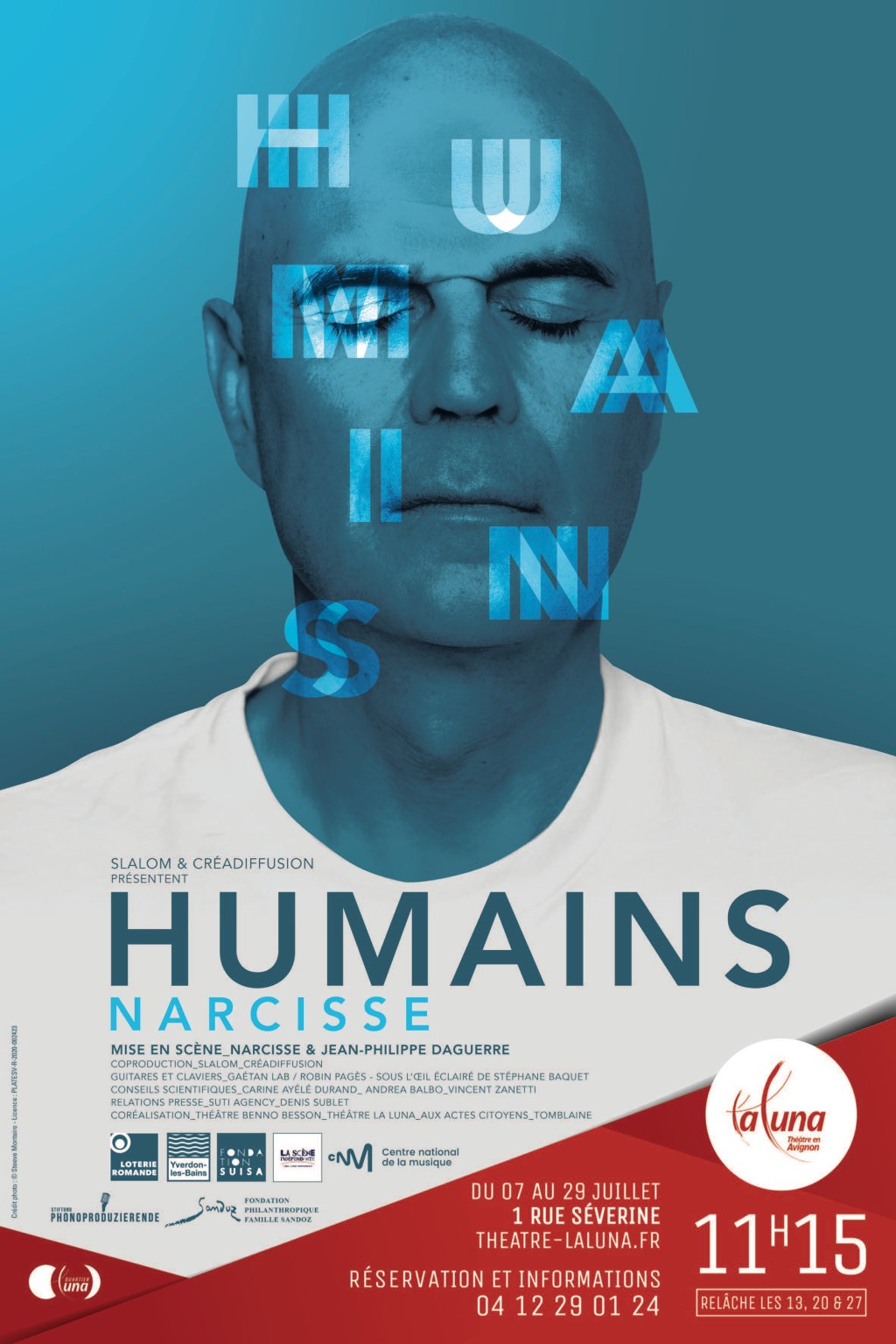 C’est sous le soleil avignonnais que vous pourrez découvrir le spectacle dont je vais vous parler. Il s’agit du nouveau spectacle écrit et interprété par Narcisse; dans une mise en scène co-signée entre Narcisse lui-même et Jean-Philippe Daguerre : Humains.