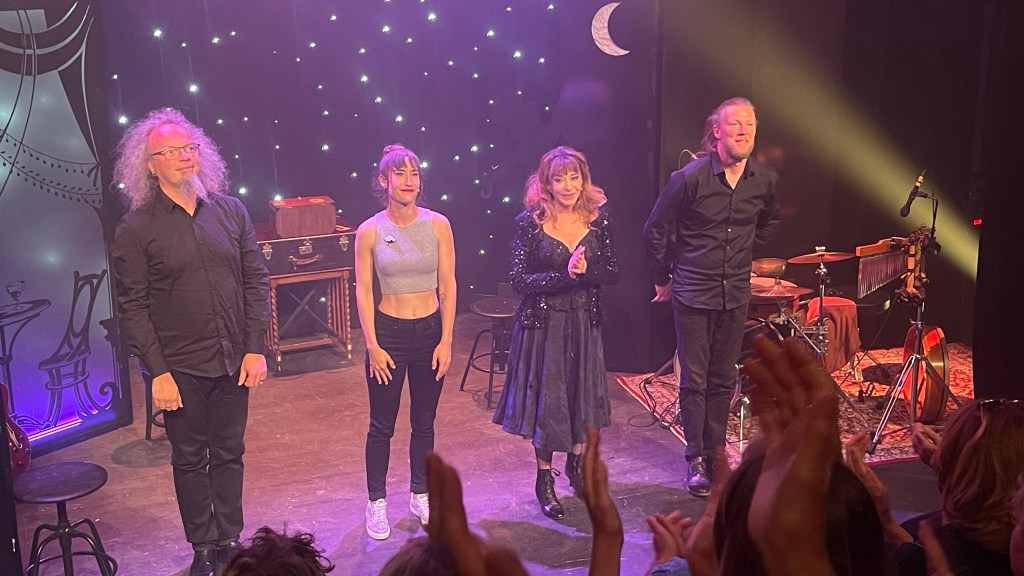 Que dire à part que vous passerez de doux moments, poétiques et musicaux; dans ce cabaret tout en légèreté et émotion. On en sort les yeux et les oreilles remplis d’étoiles et de mélodies que l’on fredonne encore dans les rues après le spectacle…