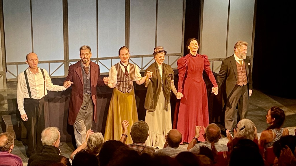 La distribution est à la hauteur de la pièce qu’ils défendent; c’est à dire magistraux. Romain Lagarde et Stéphane Dauch sont d’une grande intensité combative et dramatique, brillants de justesse et d’éloquence; ils incarnent parfaitement ces deux hommes prêts à mettre leur notoriété et leur « nom » au service de la justice et de la liberté; au détriment de la leur. Sandrine Seubille, Barbara Lamballais et Armance Galpin apportent beaucoup d’émotion, de douceur et aussi de légèreté dans les rôles des femmes entourant ces deux téméraires; remplies de courage, d’amour et de sacrifice pour celui qu’elles aiment (Zola pour Alexandrine et Jeanne; et Eugénie pour Méliès). Antoine Guiraud interprète avec une parfaite alternance de légèreté et de drame les rôles de Clémenceau, le vice-président Kestner et le comedien qui interprètera Dreyfus dans le film de Méliès; et pour clore cette distribution, Thibault Sommain interprète près de 10 personnages tous aussi différents les uns des autres; tels que l’horrible Léon Daudet ou le drôle de juge dans le film de Méliès. Toute cette distribution absolument admirables nous offrent une sensation d’unité et de complémentarité entre tous, ce qui nous donnent des séquences ou l’on retient sa respiration tellement l’intensité dramatique est palpable; telle qu’une scène où les 7 comédiens, chacun dans un rôle, se retrouvent tous ensemble lors d’une scène mémorable et poignante; mais dans laquelle aucun d’entre eux ne se parlent…