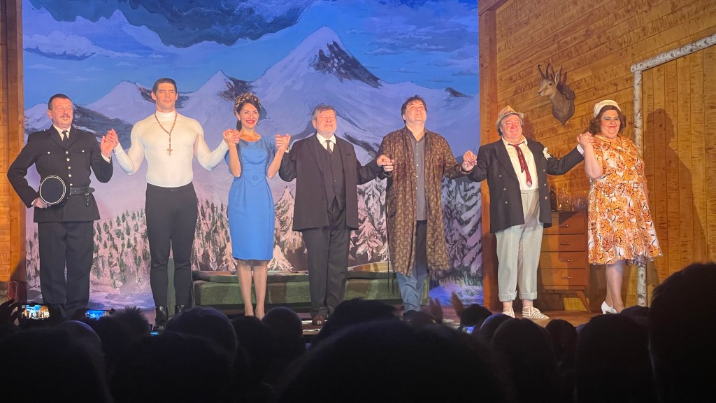 La mise en scène de Michel Fau nous ramène à la belle époque d’Au Théâtre Ce Soir avec un décor grandiose et somptueux, tout d’abord sombre mais s’ouvrant vers la lumière et la vérité au fil de l’intrigue. L’ambiance de la pièce nous transporte immédiatement dans les années 60; ne serait ce que par la musique qui apparaît fréquemment durant le spectacle; celle des 5 Dernières Minutes, célèbre série télévisée policière française des années 60 dans laquelle la solution de l’enquête était dévoilée sur les 5 dernières minutes de l’épisode par l’inspecteur Bourrel; interprétée par Raymond Souplex (qui d’ailleurs joua à la création de la pièce de Robert Thomas La Perruche et Le Poulet). Tout rapporte aux 5 dernières minutes du spectacle, y compris sur l’affiche où il est demandé de ne surtout pas dévoiler les 5 dernières minutes du spectacle; pour ne surtout pas gâcher la résolution du mystère Corban.