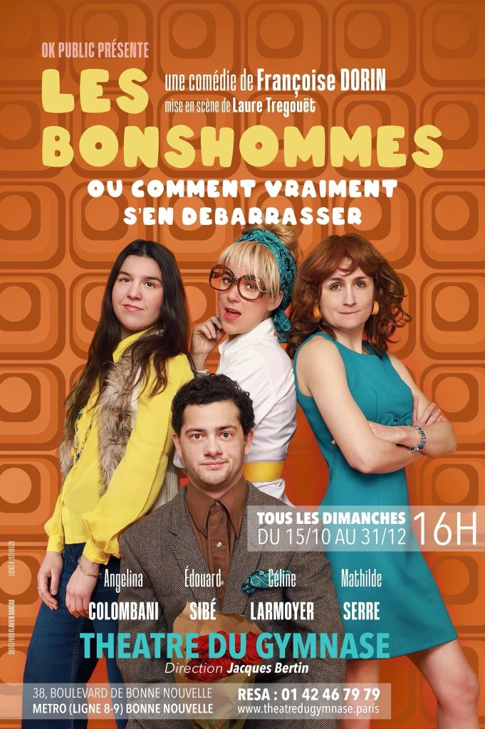 Aujourd’hui je vais vous parler des Bonshommes. Il s’agit d’une pièce de Françoise Dorin, mise en scène par Laure Tregouët et interprétée par Céline Larmoyer, Angelina Colombani, Mathilde Serre et Edouard Sibé.