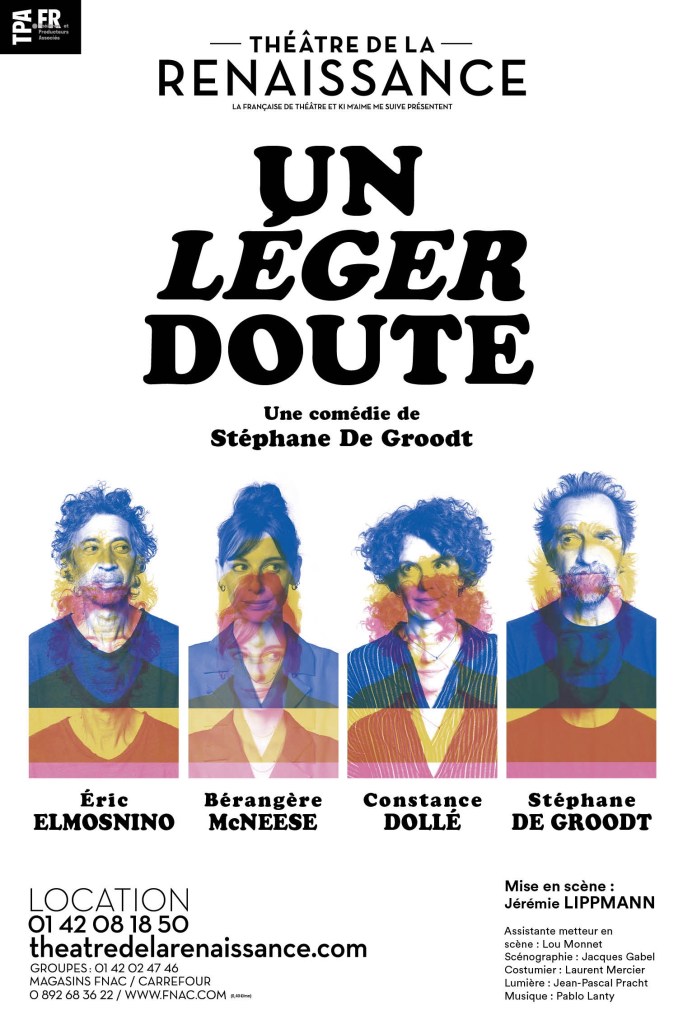 Aujourd’hui je vous emmène du côté du Théâtre de La Renaissance pour vous parler de la pièce Un Léger Doute, écrite et interprétée par Stéphane De Groodt, avec Constance Dollé, Éric Elmosnino et Bérangère McNeese; dans une mise en scène signée Jérémie Lippmann.