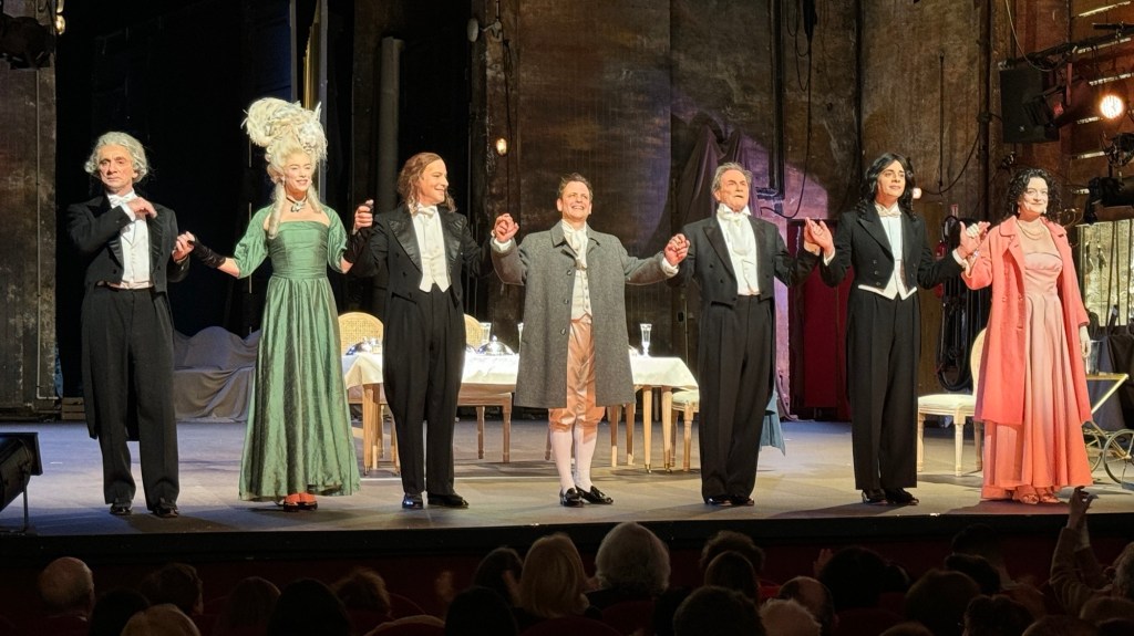 Dans cette magnifique salle du Théâtre Hébertot, le Théâtre est véritablement à l’honneur. Le texte (ingénieusement coupé) est efficace et grinçant. Il laisse la place à des situations cyniques installées grâce à des comédiens merveilleux qui tiennent leur partition de la première note à la dernière. Incroyable Maxime d’Aboville : excellemment drôle dans son ridicule qui va au bout de ses émotions et de sa gestuelle. Une leçon de jeu… Oui, car avec Anouilh, malgré un cynisme qui résonne énormément, on rit.