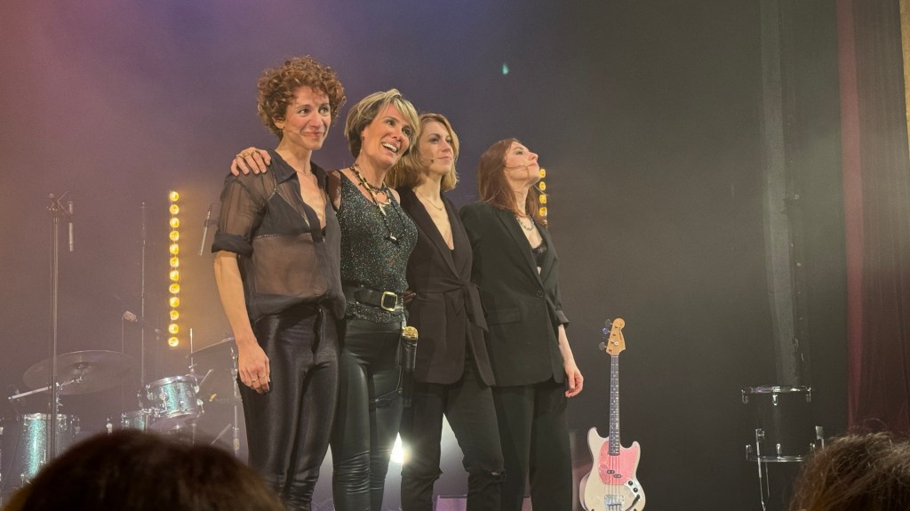 « Noémie De Lattre : L’Harmonie des Genres », mise en scène de Stéphane Corbin; avec Cléo Bigontina à la basse, Élodie Milo à la guitare et au chant et Swanny Elzingre à la batterie. Au Théâtre des Mathurins jusqu’au 29 Avril; les dimanches à 20h et les lundis à 20h30.