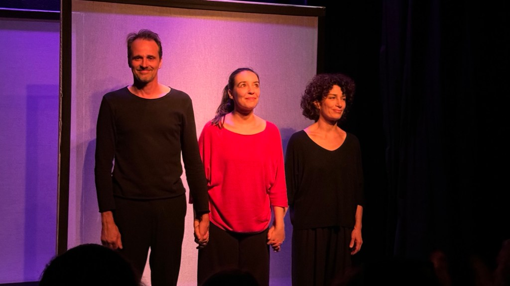 Et que dire de ces trois excellents comédiens; qui par leurs talents nous touchent en plein cœur avec facilité et énormément de douceur . Agathe Sanchez, Dorothée Leveau et Anthony Alborghetti sont absolument sublimes; ils nous embarquent avec une telle aisance et une vibrante émotion à travers la relation de ces deux âmes sœurs, et réussissent par leur talents à nous captiver jusqu’aux dernières secondes du spectacle et jusqu’à la révélation finale; qui en touchera et en bouleversera plus d’un.