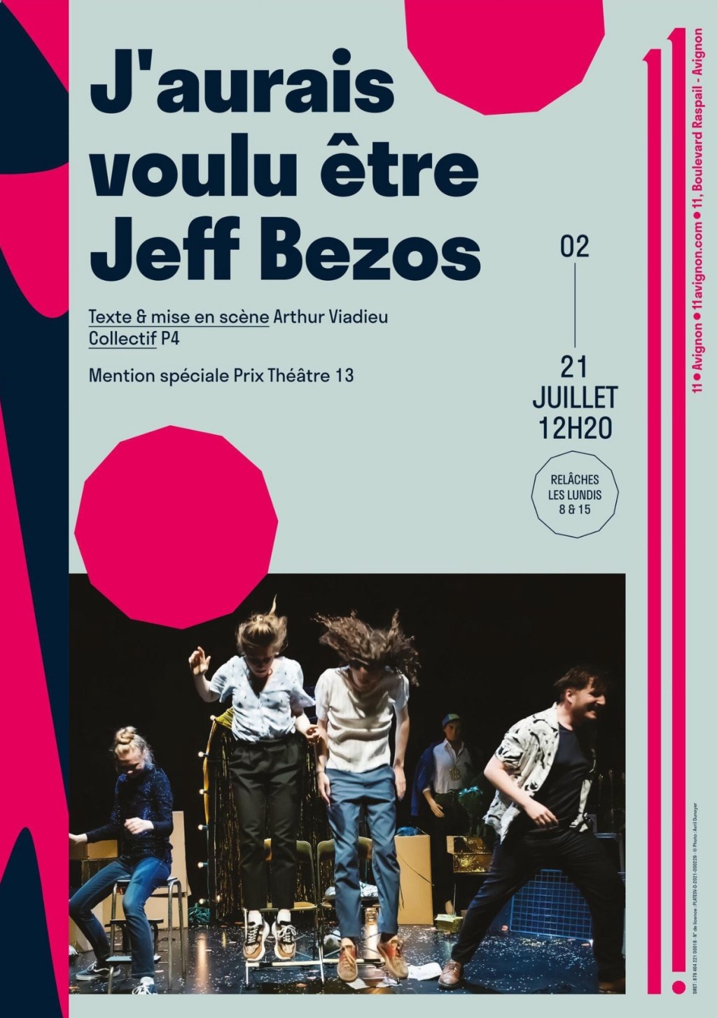 Bien que Le Festival d’Avignon ait touché à sa fin; nous allons continuer à vous parler de nos petites découvertes sur place. Aujourd’hui c’est Lady H qui va vous parler de « J’aurais voulu être Jeff Bezos »,vue au Théâtre 11; une pièce écrite d’Arthur Viadieu, mise en scène de L’Auteur et du Collectif P4 et interprété par Le Collectif P4 : Bob Levasseur, Chloé Chycki, Claire Olier, Mathias Minne et Roma Blanchard.