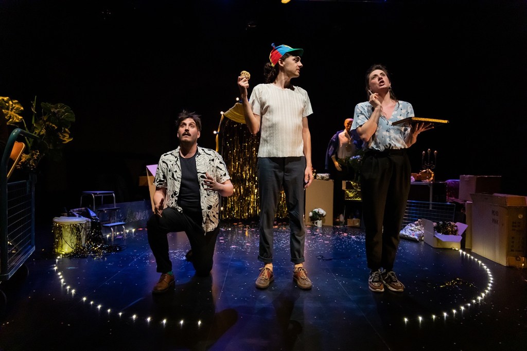 « J’aurais voulu être Jeff Bezos », d’Arthur Viadieu, mis en scène par l’auteur et le collectif P4, Scénographie de Lucie Meyer, Création Musicale d’Antoine Mermet, Lumières de Maxime Charrier; avec Roma Blanchard, Chloé Chycki, Bob Levasseur, Mathias Minne et Claire Olier.