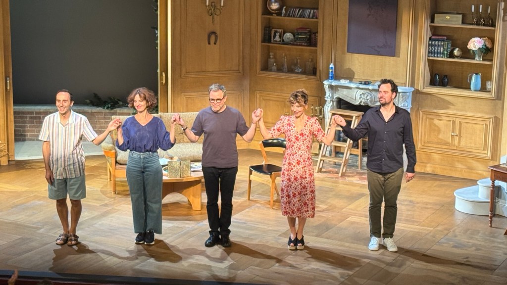 La mise en scène signée José Paul se marie encore une fois parfaitement aux plumes des deux auteurs, et y apporte une belle énergie; nécessaire en comédie. Et pour couronner le tout, il faut une distribution se sentant tout aussi bien entre eux que dans ces situations rocambolesques. Le résultat est tout simplement parfait : autour d’un Guillaume de Tonquédec qui excelle dans la peau de ce personnage regrettant sa vie et la voyant changer du tout au tout par un simple lancement de dé; gravitent toute une équipe aussi brillante qu’hilarante mais pour qui tout est normal; sauf la santé mentale de leur ami ou conjoint. Lysiane Meis, Caroline Maillard, Jean Franco et Loïc Legendre sont tous tout simplement parfaits dans chaque « version » de leur personnage; tantôt touchants tantôt ignobles, à revivre (à peu près) ce même instant de week-end (ou pas). Cette troupe nous régale à chaque instant, à chaque réplique de cette comédie humaine, d’humains.