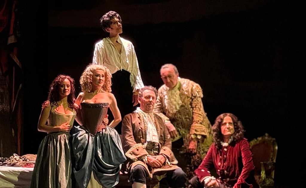 La pièce et sa mise en scène en elle-même est déjà un gage de qualité en soi; la distribution est au delà du brillant. Autour de Vincent Heden qui campe un Kynaston d’une sensibilité et d’une émotion sans limite qui va voir sa brillante carrière disparaître dans les limbes; Emma Gamet est une Margaret/Maria pétillante et dévorante de vie et d’apprentissage au détriment de la vie et de la carrière d’Edward, Sophie Tellier est parfaitement hilarante dans ce rôle d’ex prostituée rêvant de devenir actrice, devenant la maîtresse du roi et qui va malgré elle bouleverser le confort de Kynaston et la vie de Margaret. Du côté de ces messieurs; Patrick Zard’ alterne brillamment les rôles du roi Charles II et du directeur du Duke’s Theater qui va être le témoin de l’ascension de son habilleuse et de l’oubli de sa vedette, Patrick Chayriguès nous montre encore une fois son talent en passant d’un homme détestable à un amoureux du théâtre qui verra s’opérer un changement important dans le monde du théâtre en Angleterre et dans la vie privée des uns et des autres. Pour clore cette distribution lumineuse et pleine d’énergie; Stéphane Cottin joue un Villiars soutenant par son statut de duc et proche du roi le théâtre de Kynaston et plus personnellement l’homme derrière l’artiste; mais quand la royauté en décide autrement, les opinions et les sentiments changent comme le sens du vent…