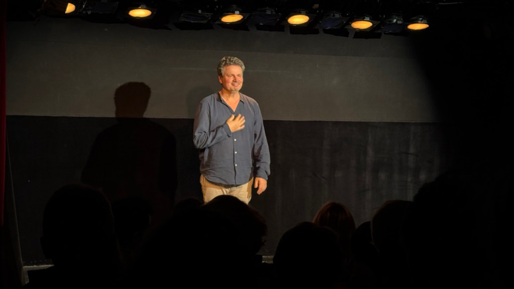 En effet; l’écriture de Bernard Jeanjean ainsi que son interprétation nous font naviguer durant un peu plus d’une heure entre souvenirs et questionnement intérieur, entre rires et larmes; le tout avec un réel brio. On est happés dès les premiers instants dans cette aventure intérieure dans laquelle chacun d’entre nous pourrait se reconnaître et se remémorer des souvenirs passés. De la famille à la rencontre avec l’élue de son cœur en passant par la perte d’un proche et de la dépression qui s’en suit, dans une mise en scène à quatre mains signée Martine Fontaine et Bernard Jeanjean, on rit beaucoup de la situation mais on est émus aux larmes par certaines séquences qui peuvent parler à beaucoup de monde.