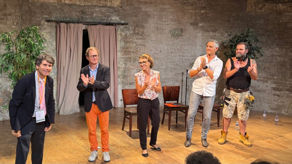 Et pour faire tenir le rire du public chaque seconde dans cette folie burlesque théâtrale; il fait une équipe de choc. Et de ce côté là aussi; c’est carton plein !! Autour de Gilles Dyrek; on y retrouve Séverine Debels et Xavier Martel (déjà vus ensemble dans Venise Sous La Neige) ainsi que Benjamin Alazraki et Jean-Gilles Barbier (déjà réunis dans Le Retour de Richard 3 par le train de 9h24), c’est donc une équipe de talents se connaissant bien qui prennent un réel plaisir à s’amuser sur scène et à amuser le public dans ce marathon burlesque sans temps mort; à passer d’un personnage à un autre avec énormément d’aisance et de brio.