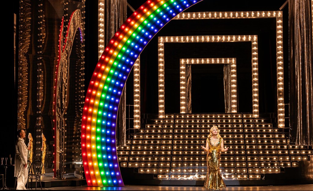 Cette fidélité au propos n’empêche jamais l’ampleur du spectacle, bien au contraire. La mise en scène d’Olivier Py se déploie avec une générosité visuelle impressionnante, convoquant l’esthétique du cabaret et les codes du grand musical, dans une écriture scénique fluide et lisible. Les tableaux s’enchaînent avec une précision remarquable, portés par un travail de lumière et de scénographie qui donne au plateau une dimension à la fois festive et théâtrale.