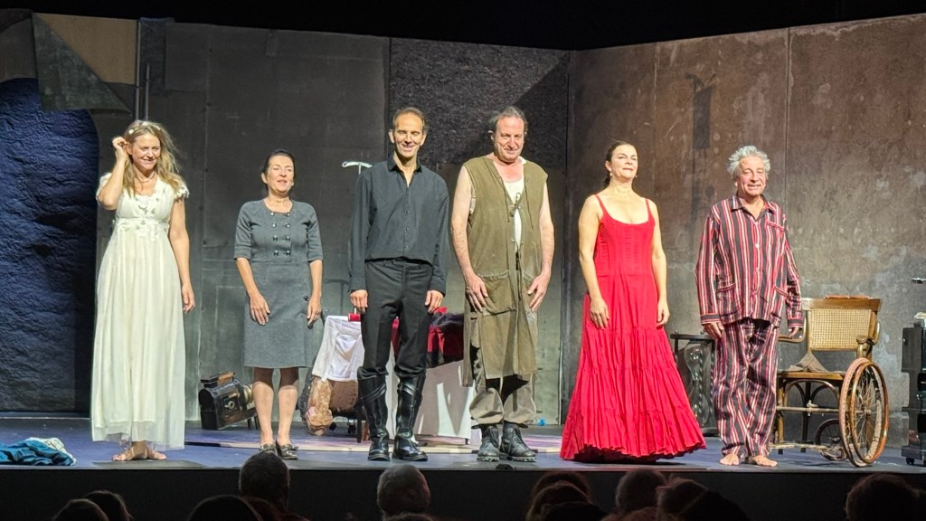 La force du spectacle repose aussi sur une troupe particulièrement solide. Vincent Lorimy, dans le rôle du Roi, est tour à tour autoritaire, perdu, capricieux et bouleversant. Il fait rire autant qu’il touche, et donne au personnage une vraie proximité avec le public. Face à lui, Valérie Alane campe une Reine Marguerite ferme, directe, presque sévère, dont la lucidité tranche avec l’agitation générale et crée de nombreux moments savoureux. Chloé Berthier, en Reine Marie, apporte une grande douceur et une émotion sincère : son attachement au Roi et son refus de la fin annoncée sont profondément touchants. Thomas Cousseau incarne un Médecin à la fois sérieux et délicieusement décalé, Armand Eloi donne au Garde une présence drôle dans le fait d’insupporter tout le monde avec ses annonces et attachante, tandis que Nathalie Lucas, en Juliette, apporte une simplicité et une chaleur qui ancrent la pièce dans le quotidien.
